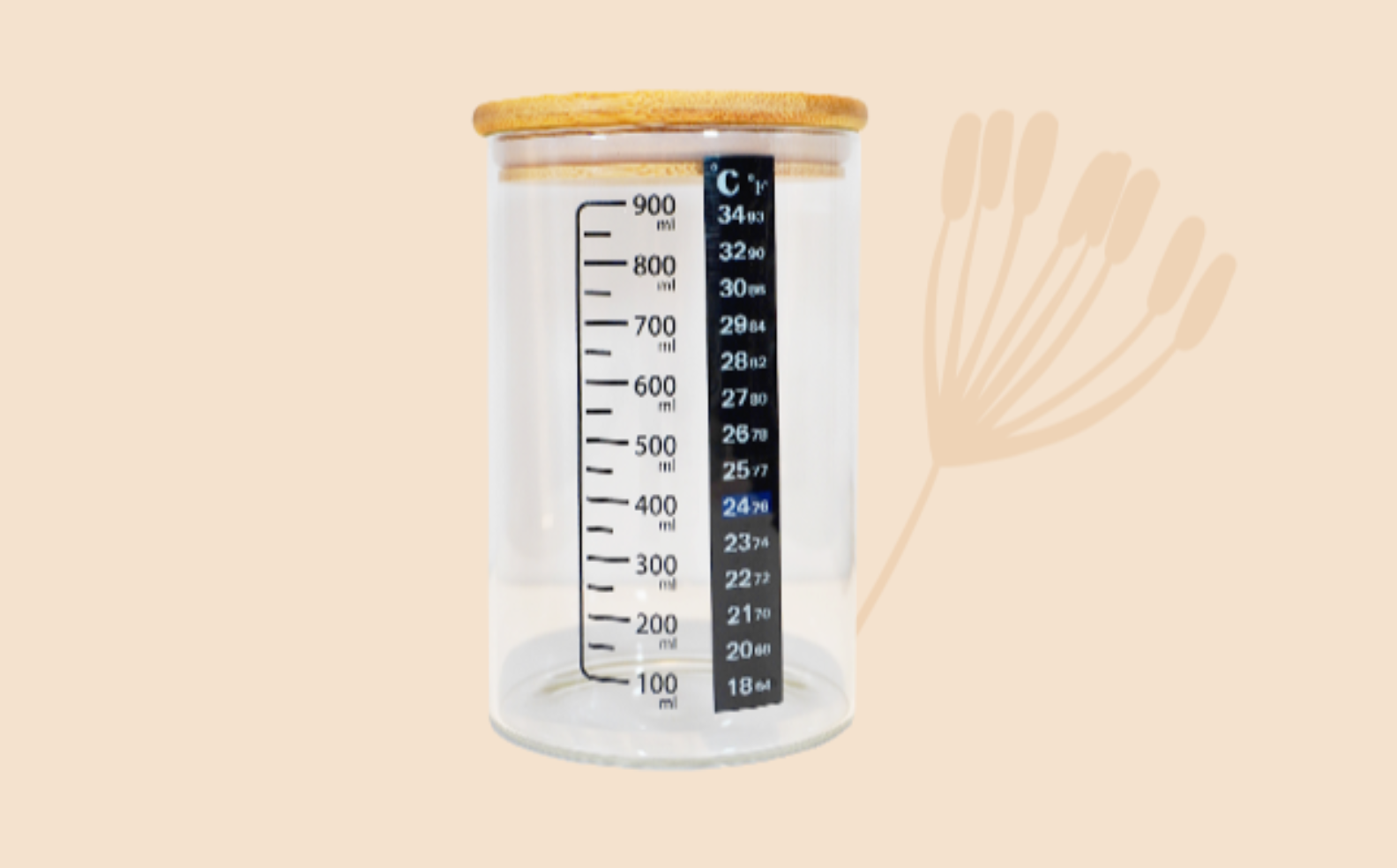 The sourdough jar has a 34oz large capacity - enough to make 4-5 sourdough loaves.